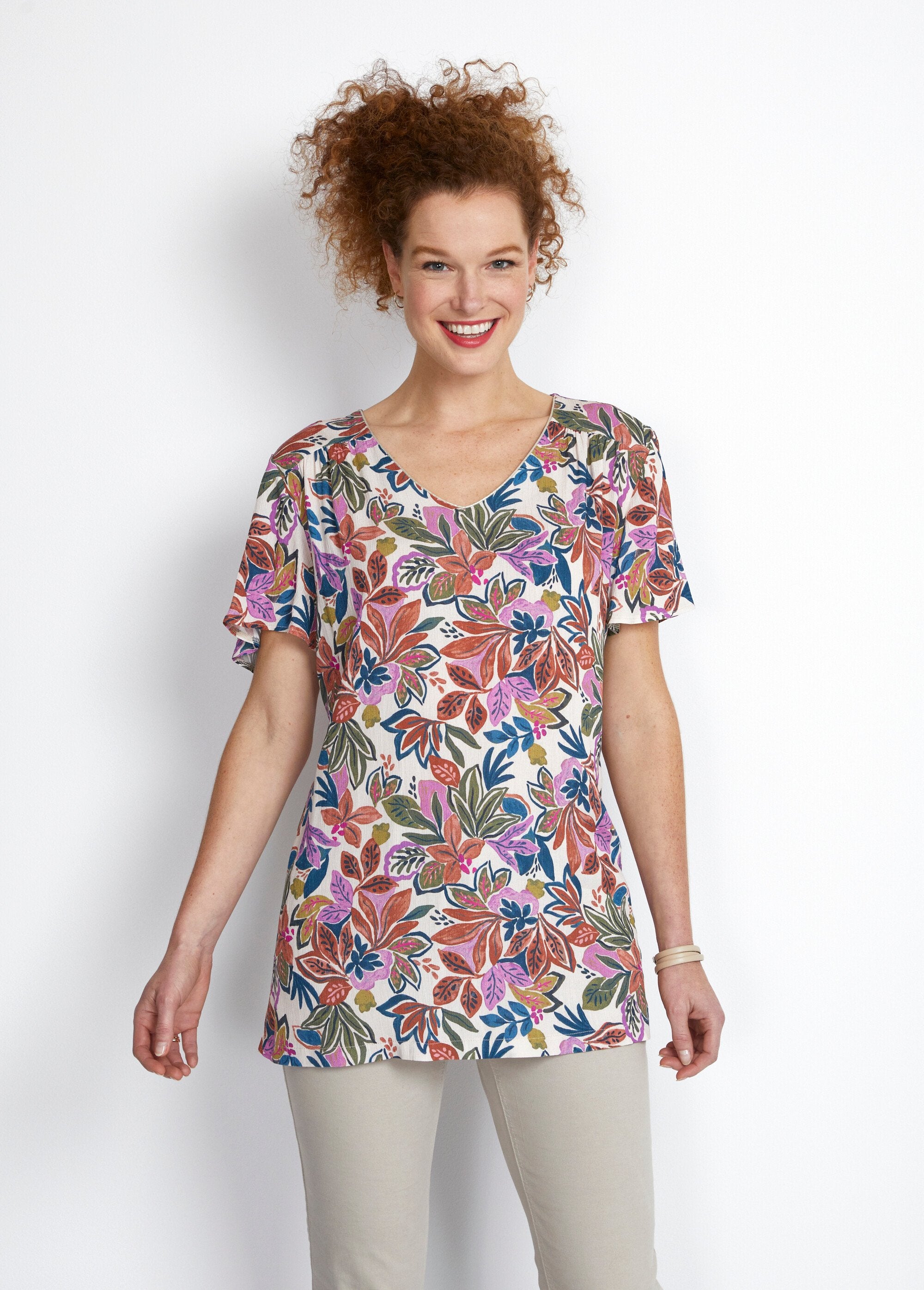 Long flared floral or plain tunic